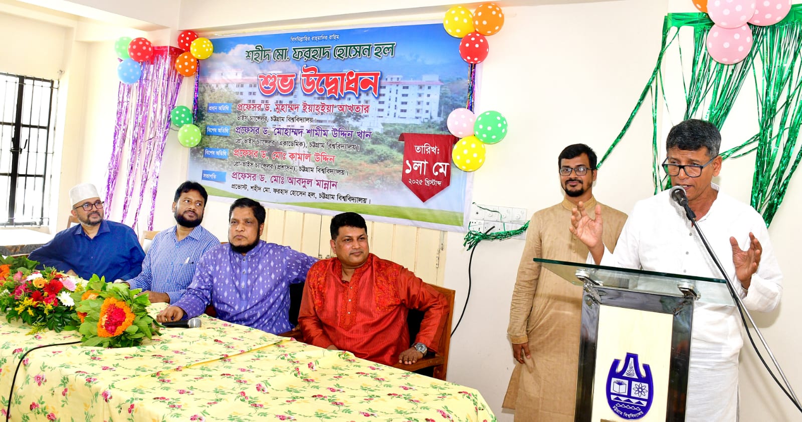 চট্টগ্রাম বিশ্ববিদ্যালয়ে শহীদ মো. ফরহাদ হোসেন হলের আবাসিক কার্যক্রমের উদ্বোধনী অনুষ্ঠান আজ (১লা মে ২০২৫) দুপুর ১ টায় হলের সভাকক্ষে অনুষ্ঠিত হয়। উদ্বোধনী অনুষ্ঠানে প্রধান অতিথি ছিলেন চট্টগ্রাম বিশ্ববিদ্যালয়ের উপাচার্য প্রফেসর ড. মুহাম্মদ ইয়াহ্ইয়া আখতার। অনুষ্ঠানে বিশেষ অতিথি ছিলেন চবি উপ-উপাচার্য (একাডেমিক) প্রফেসর ড. মোহাম্মদ শামীম উদ্দিন খান, উপ-উপাচার্য (প্রশাসন) প্রফেসর ড. মো. কামাল উদ্দিন, চবি রেজিস্ট্রার (ভারপ্রাপ্ত) প্রফেসর ড. মোহাম্মদ সাইফুল ইসলাম। শহীদ মো. ফরহাদ হোসেন হলের প্রভোস্ট প্রফেসর ড. মো. আবদুল মান্নানের সভাপতিত্বে এবং হলের আবাসিক শিক্ষক ড. মো. কামরুল হোসেনের সঞ্চালনায় শিক্ষার্থীদের মধ্যে বক্তব্য রাখেন হলের আবাসিক শিক্ষার্থী গোলাম মোস্তফা।