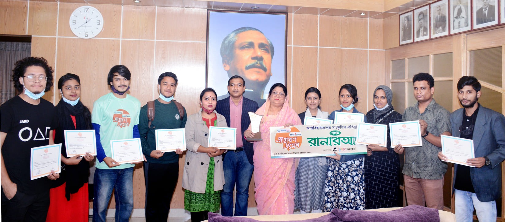 চবি উপাচার্যের সাথে আন্তঃবিশ্ববিদ্যালয় সাংস্কৃতিক উৎসবে ১ম রানার আপ অর্জনকারী দলের সৌজন্য সাক্ষাৎ